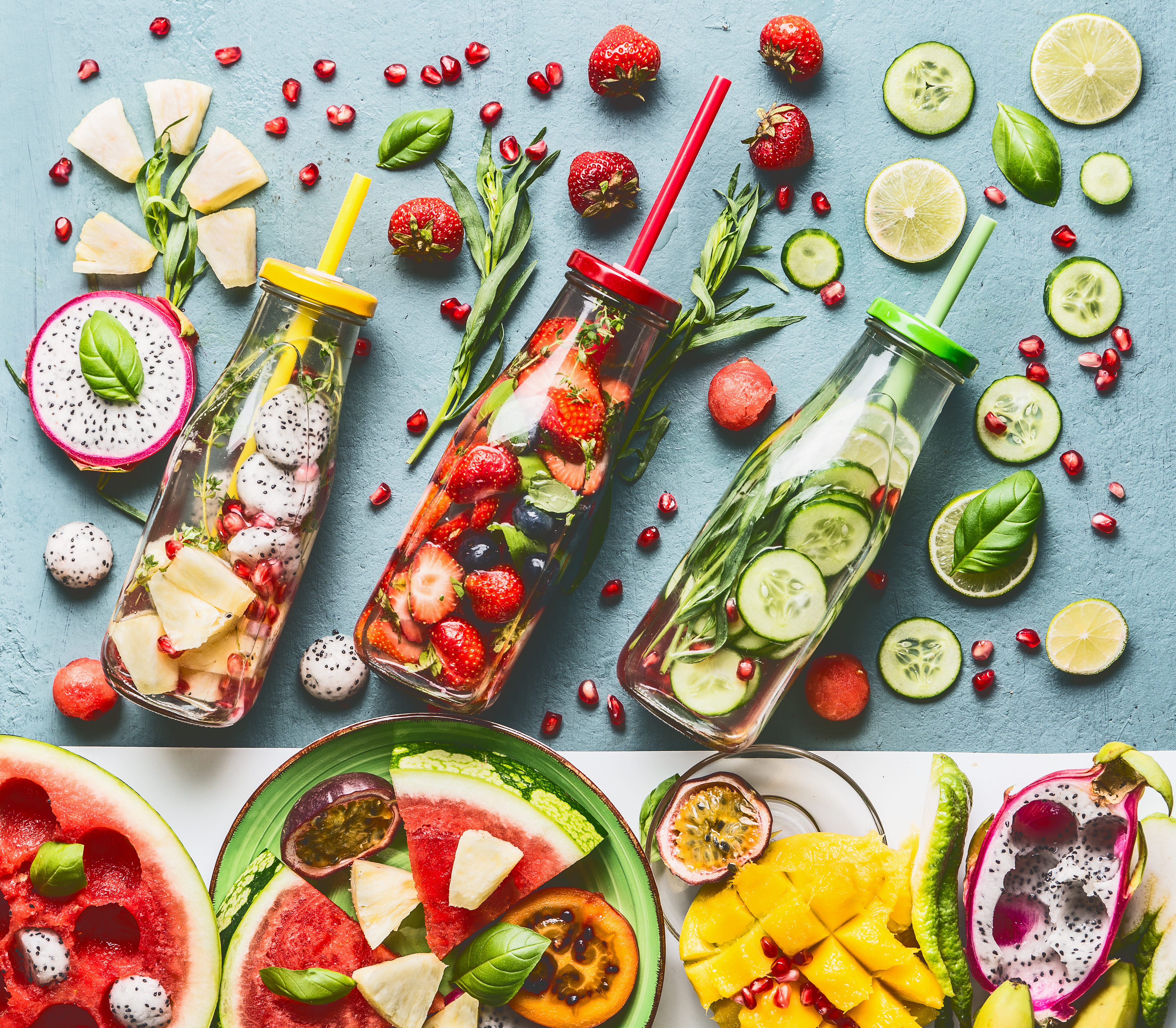 Stay away from carbonated and caffeinated drinks. herbal teas and fresh fruit or vegetable juices are great in summer. Just remember that fruit juices are high in sugar and calories. Coconut water is cooling and helps to replenish electrolytes, which is especially important during and after an illness.